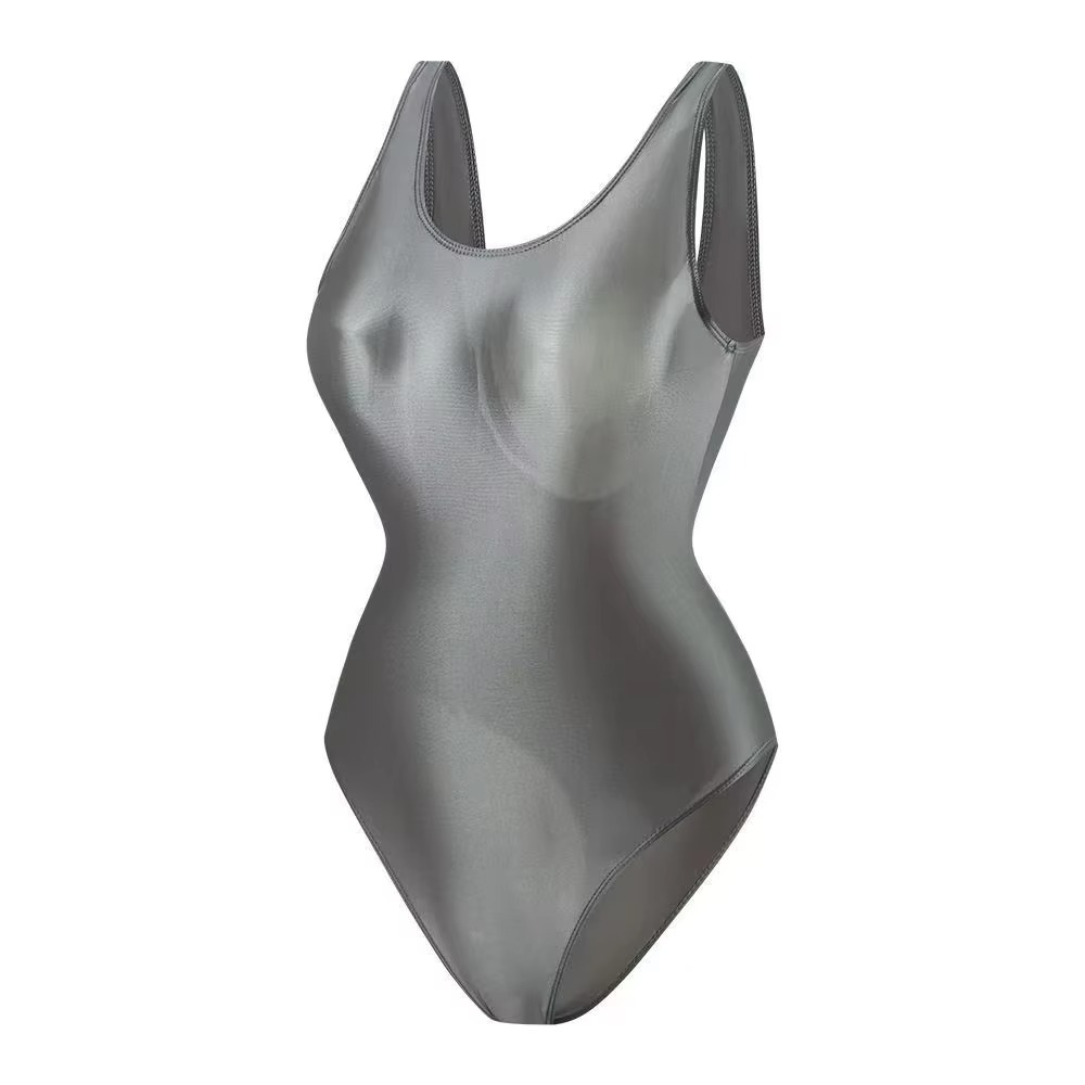 Sleek, simple, and ultra-flattering. This one-piece comes in a glossy finish that catches the light and smooths over your curves. A clean scoop neckline in front and a deep scoop back keep it minimal yet sexy, while the high-cut leg subtly lengthens your silhouette. Soft, stretchy fabric hugs without squeezing, so you can swim, lounge, or layer it as a bodysuit with jeans.