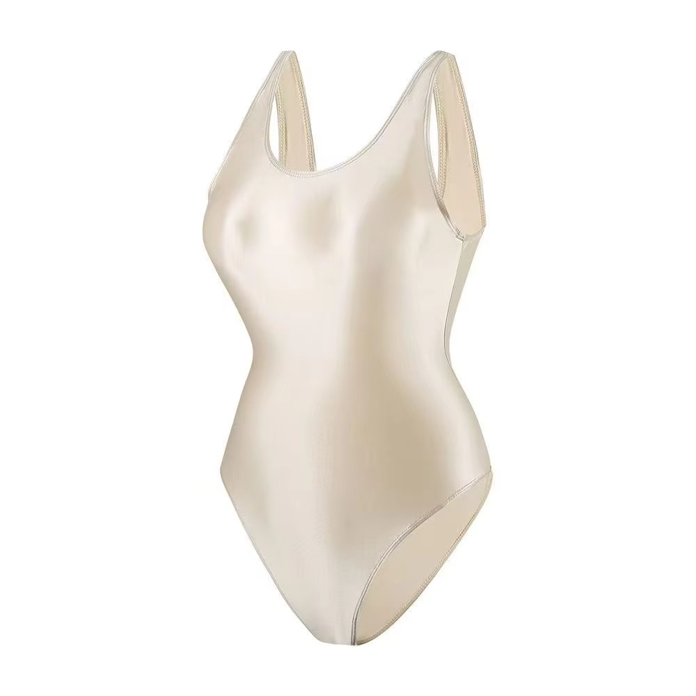 Sleek, simple, and ultra-flattering. This one-piece comes in a glossy finish that catches the light and smooths over your curves. A clean scoop neckline in front and a deep scoop back keep it minimal yet sexy, while the high-cut leg subtly lengthens your silhouette. Soft, stretchy fabric hugs without squeezing, so you can swim, lounge, or layer it as a bodysuit with jeans.